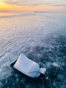 Вода навколо них перетворилась на кригу, а знесилені птахи плавали на маленькому водяному плесі.