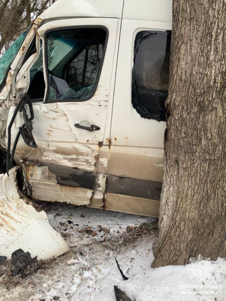 Інспектори, які прибули на місце, з'ясували, що водій Volkswagen Crafter не врахував дорожньої обстановки, не впорався з керуванням та виїхав на зелену зону узбіччя, де допустив наїзд на дерево.