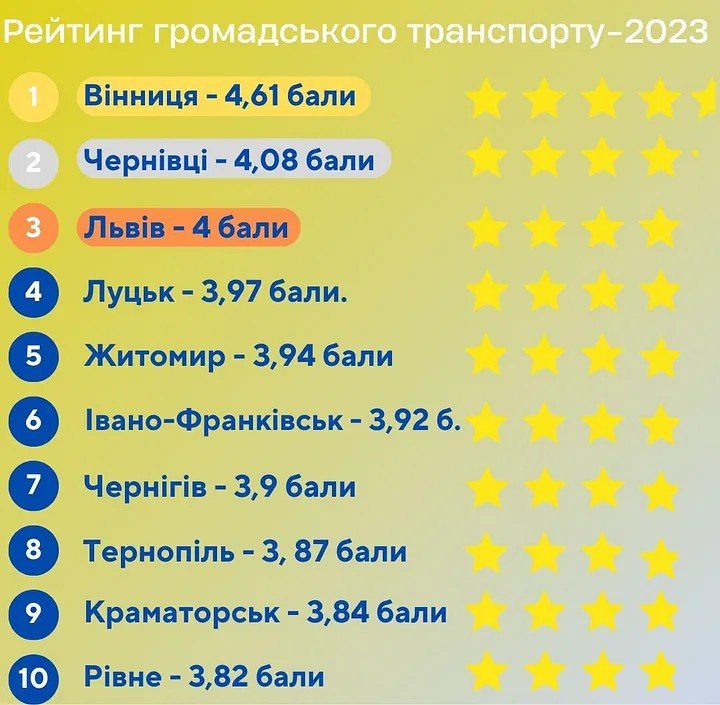 Оприлюднено рейтинг громадського транспорту: на якому місці Луцьк