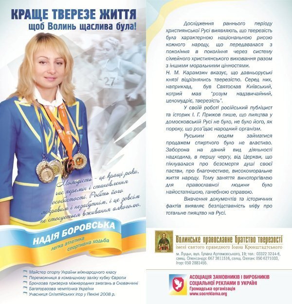 Спортсмени взяли участь у фотосесіях та долучилися до агітаційної кампанії проти пияцтва не лише з власної ініціативи, а й на прохання Волинського братства тверезості імені Святого Іоанна Кронштадського.