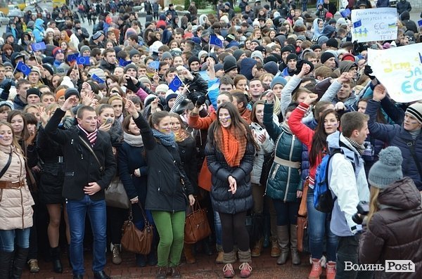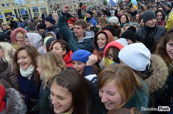 У Луцьку студенти різних університетів зібралися на Єромайдан без будь-якої політичної символіки.