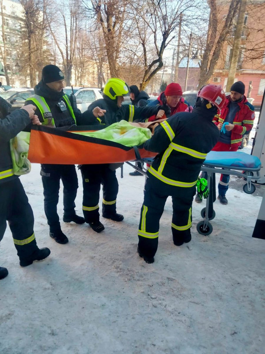 Фахівці ДСНС відкрили двері та за допомогою медичних ношей транспортували потерпілого до карети швидкої, де передали його лікарям.