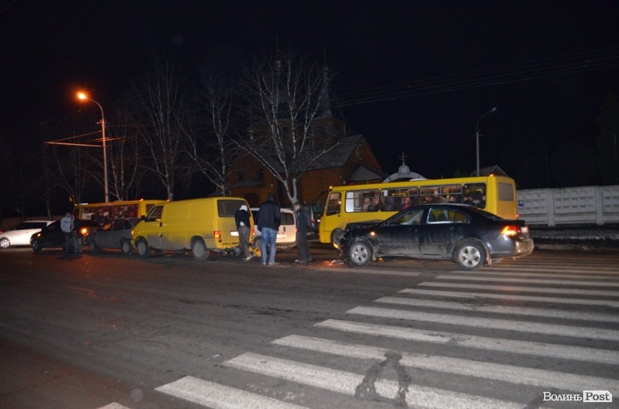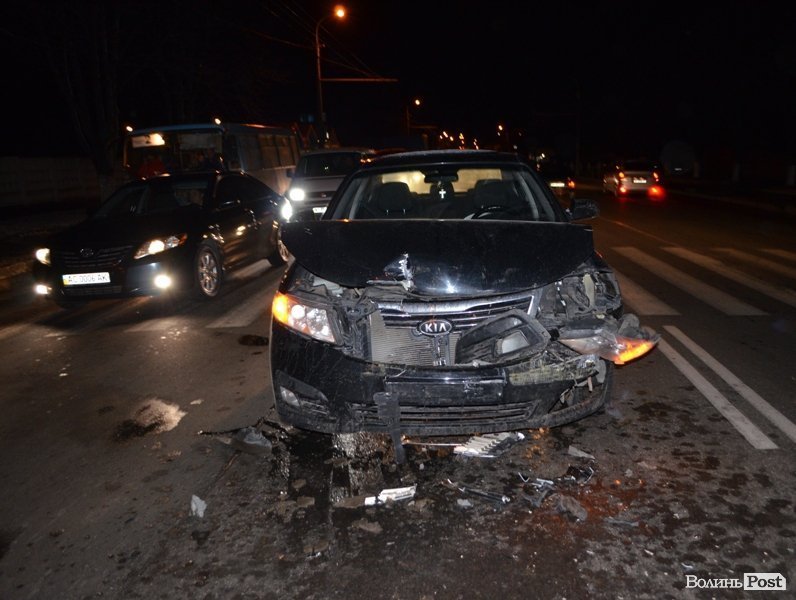 На вулиці Рівненській у Луцьку у ДТП постраждали чотири автомобілі – найбільше дісталося автомобілю КІА.
