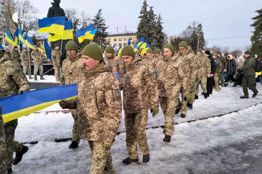 До Дня Соборності України у Луцьку сьогодні, 22 січня, розгорнули 200-метровий прапор, створивши символічний "ланцюг єдності".