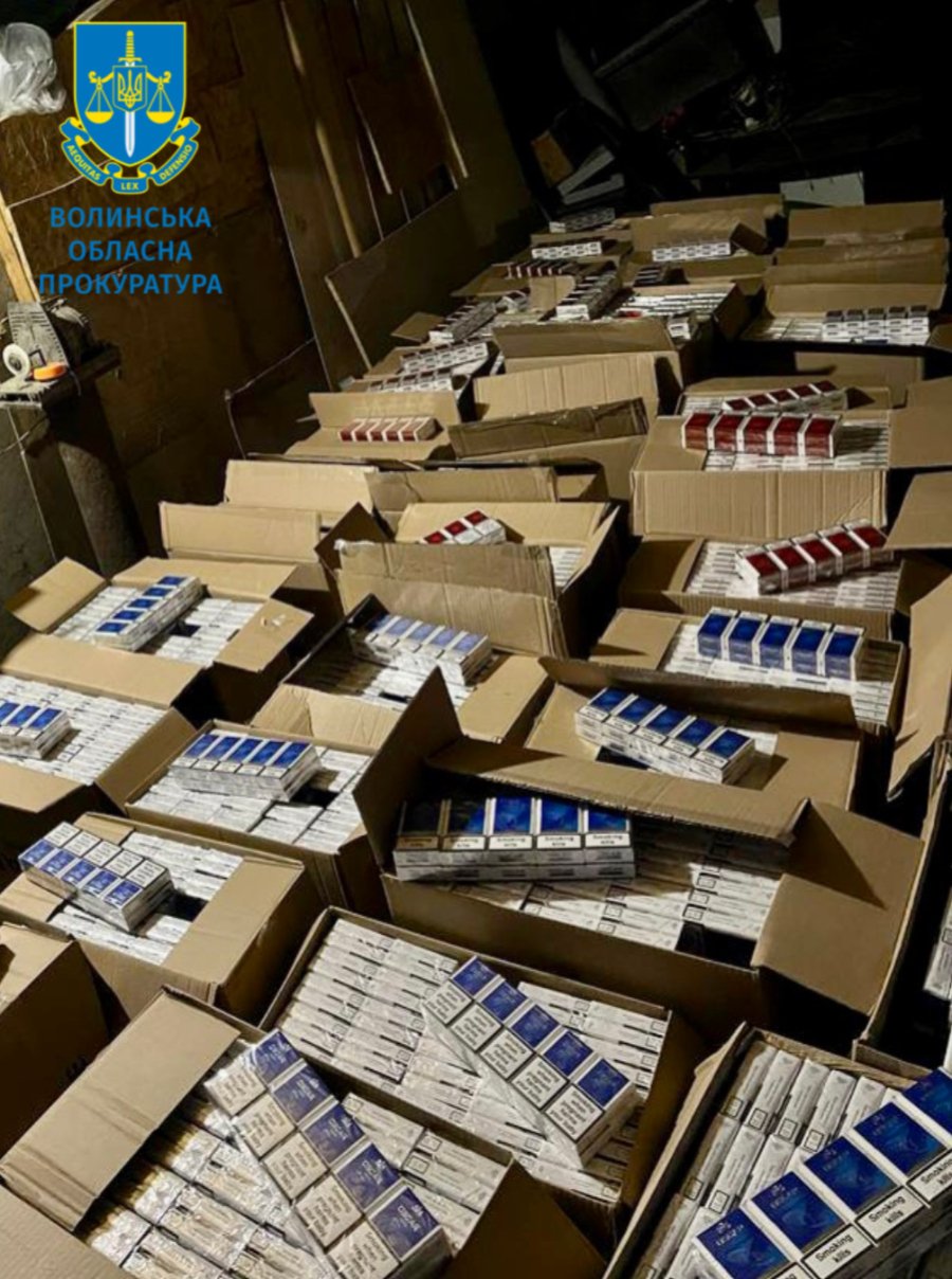 За процесуального керівництва Волинської обласної прокуратури у межах розслідування кримінального провадження про незаконне придбання, зберігання, транспортування з метою збуту підакцизних товарів, а також про незаконні дії з марками акцизного податку (ч. 1 ст. 204, ч.2 ст. 199 КК України) на Волині виявлено контрафактні тютюнові вироби на суму понад 2,2 мільйона гривень.
