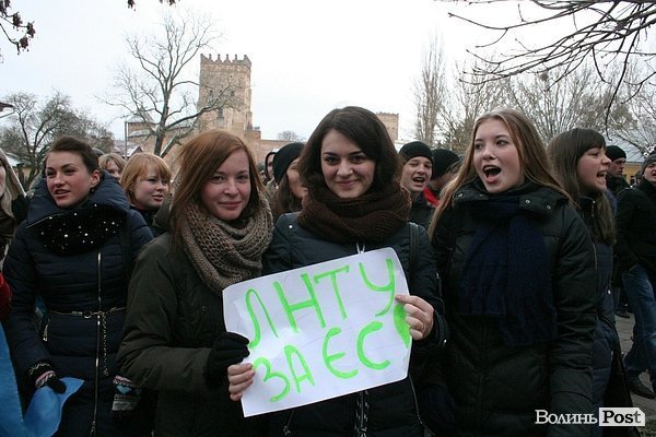 Студенти Луцького національного технічного університету пройшлися вулицями міста та навчальними закладами, закликаючи інших студентів виходити на луцький Євромайдан.