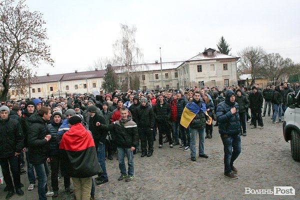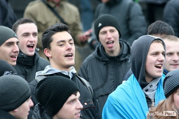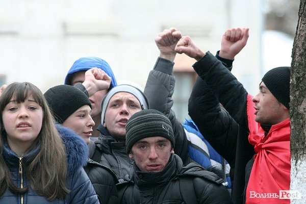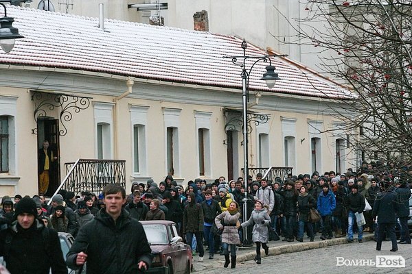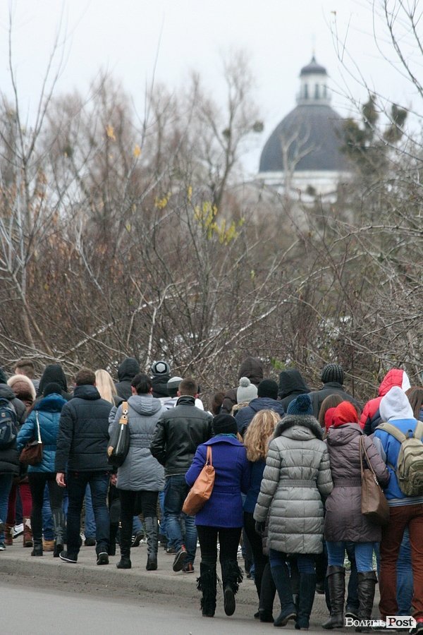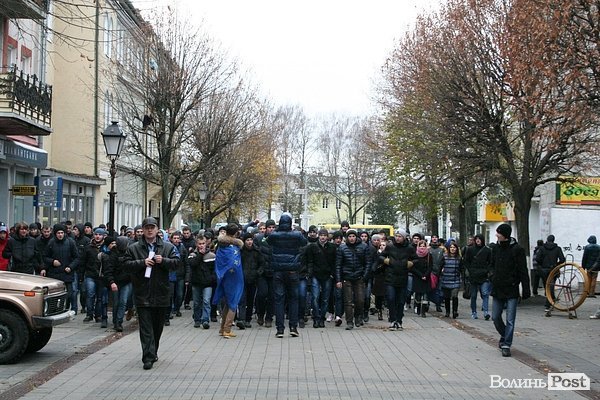 Студенти Луцького національного технічного університету від головного корпусу рушили до Вищого професійного училища на вулиці Потебні. Там вони під вікнами навчального закладу гукали студентів приєднатися до ходи. Вийшло кілька десятків людей.