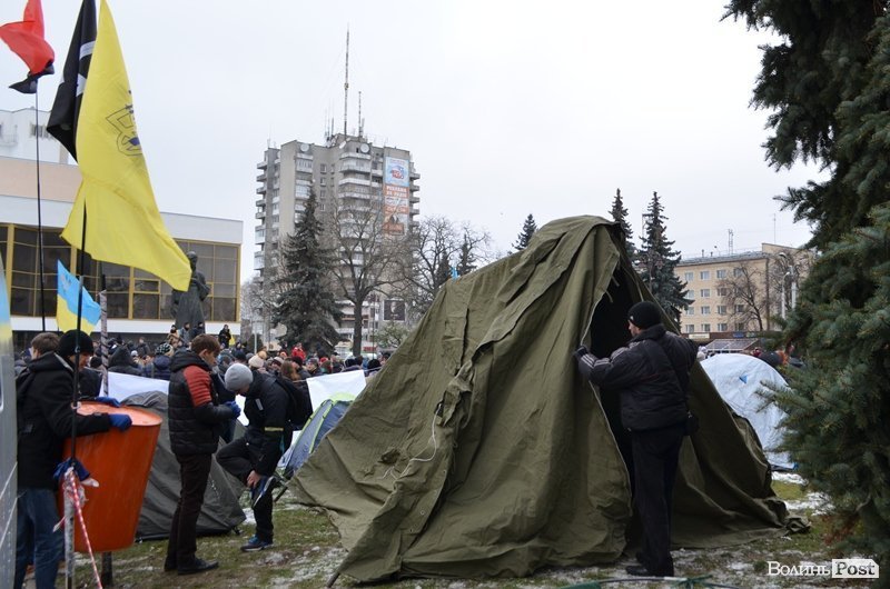 «Вчора, 26 листопада, начальника Управління ДСНС України у Волинській області Володимир Грушовінчук відмовився надавати намети мітингувалникам. Однак сьогодні, влада піддалася. На Театральному майдані вже встановлений намет і польова кухня, де мітингувальники зможуть випити теплого чаю та поїсти каші, зігрітися біля обігрівальних приладів. Це доводить, що послідовний тиск дає свій результат. Це наша перемога», – заявили у прес-службі координаційного комітету.