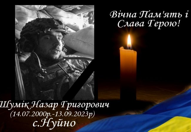 Назарій Шумік – житель села Нуйно (14.07.2000 р.н.), солдат 1-ї обслуги міномета мінометного взводу 3-ї роти спеціального призначення (на бронетранспортерах) 2-го батальйону спеціального призначення 12 Бригади спеціального призначення «АЗОВ»