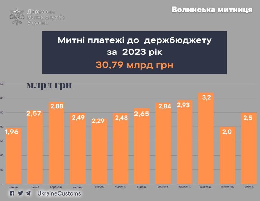 Як повідомили у Волинській митниці, наприкінці жовтня аналітики з митних платежів прогнозували на Волині зібрати у державну казну понад 3,2 млрд гривень. Їхні розрахунки базувалися на високій інтенсивності імпортно-експортних операцій, які перед новим роком проводять акредитовані підприємства, а ще - на потужностях найбільшого на українсько-польському кордоні вантажного переходу «Ягодин».
