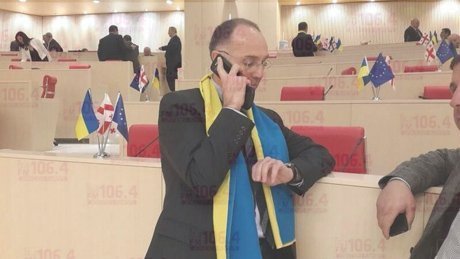 Депутати грузинського парламенту прийшли на роботу зі стрічками кольору українського прапору.