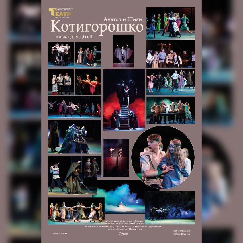 У неділю, 11 лютого, о 12:00 – казка для дітей «Котигорошко» Анатолія Шияна. Режисер-постановник – Ярослав Ілляшенко. Тривалість – 1 година 30 хвилин (антракт – 15-20 хвилин).