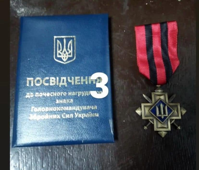 Серед нагород - почесний нагрудний знак Головнокомандувача ЗСУ Валерія Залужного «Золотий хрест».