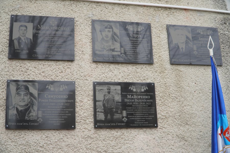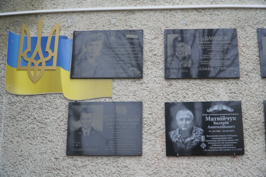 Тепер портретів на фасаді школи – дев’ять. На них – Микола Бондарук, Дмитро Сокоринський, Олександр Давидюк, Валерій Матвійчук, Олександр Максименко, Роман Самусенко, Ілля Струк, Валерій Бадзюнь та Віктор Майоренко.