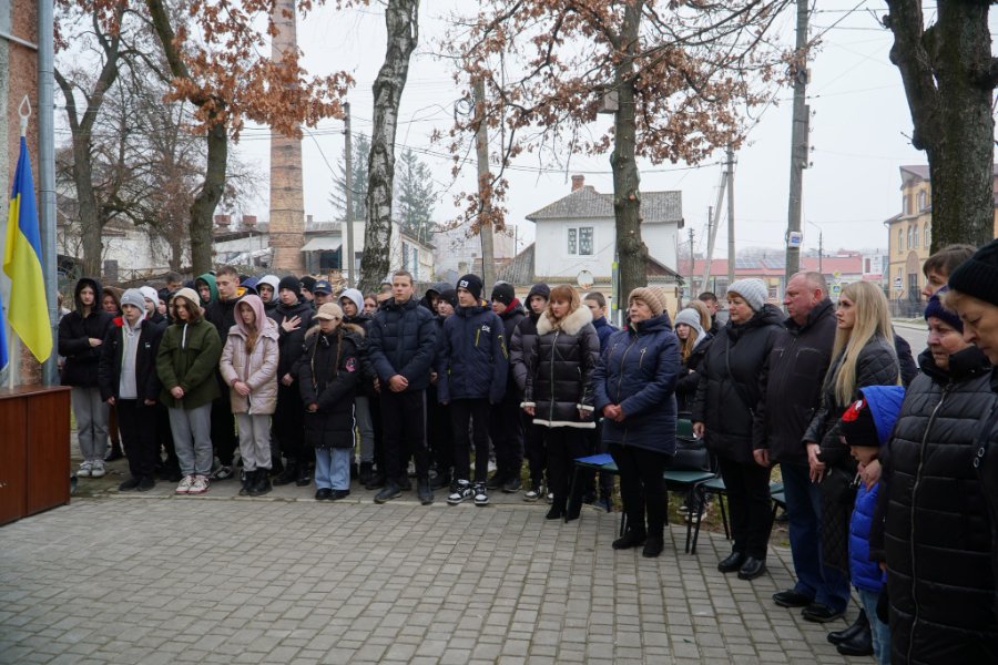 На шкільному подвір’ї, де ще відносно недавно лунали кроки полеглих воїнів, міський голова Ігор Пальонка звернувся до родин захисників та школярів, які взяли участь у цій пам’ятній урочистості: «Наше завдання вшановувати героїв і постійно пам’ятати, які жертви ми платимо у війні за нашу незалежність. Людина живе, поки живе про неї пам’ять. І ці дошки, що сьогодні відкриваємо, будуть кожному, хто проходитиме чи проїжджатиме поруч, нагадуванням, якою є ціна нашої свободи. Нехай для всіх наші захисники стануть прикладом великої любові до України».