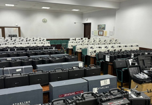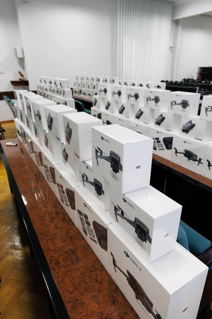 Зокрема мова йде про: 193 штуки Mavic 3, 3 FMC, Pro, 3T, 3E, 5 штук Matrice 30T, 20 зарядних станцій Ecoflow, 20 Stralink’ів, тепловізори, засоби РЕБ, обігріваючі устілки, інструмент та багато іншого.