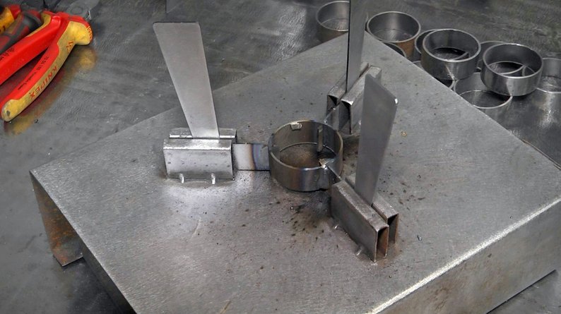 Для швидкого зварювання заготовок з трубою у готовий виріб, розповів зварювальник Орест Абрагамовський, використовують кондуктор, який виготовили на виробництві власноруч.