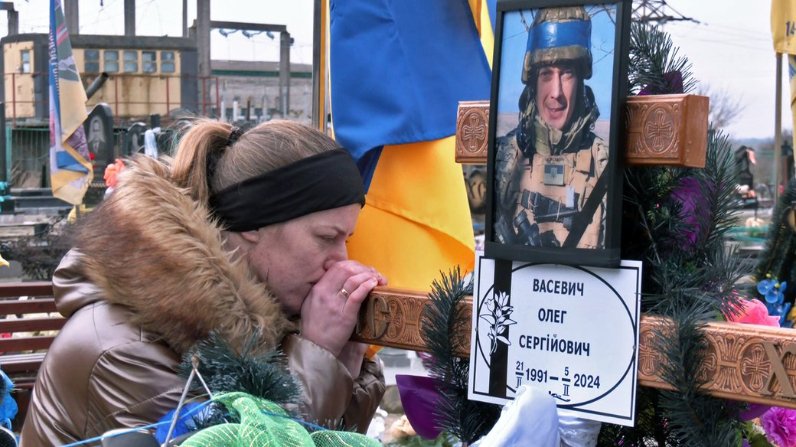 На цвинтар в місті Рожище до могили свого чоловіка, 33-річного захисника України Олега Васевича, часто приїздить дружина Оксана.
