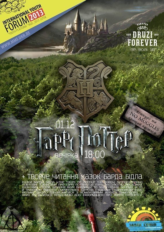 На вечірці читатимуть уривки текстів зі знаменитої гепталогії («семикнижжя») «Гаррі Поттер» та проводитимуть тематичні конкурси з призами для переможців.