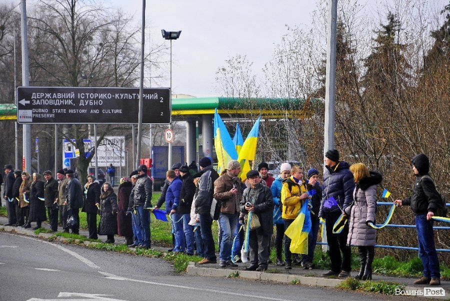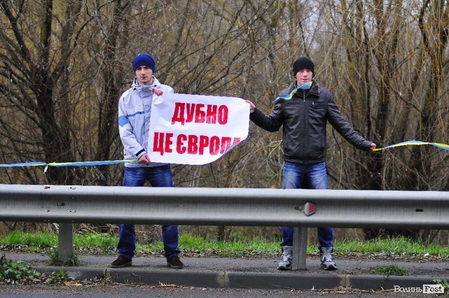 Під Дубно на акцію прийшло приблизно 200 людей. Вони створили ланцюг від в'їзду в місто з боку Луцька до села Панталія.