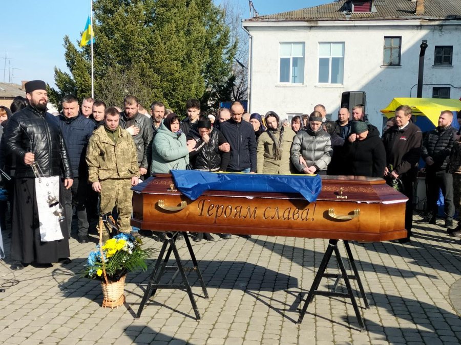 Поховали загиблого воїна на Алеї Слави місцевого кладовища. На його честь військовослужбовці здійснили салютний залп, а духовий оркестр виконав Гімн України.