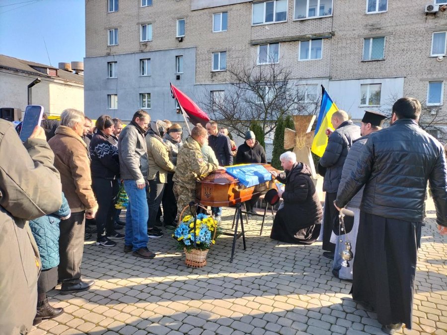 Прощалися з загиблим зі сльозами на очах, скорботою та болем від непоправної втрати, з квітами та навколішки рідні, друзі, представники влади та військові.