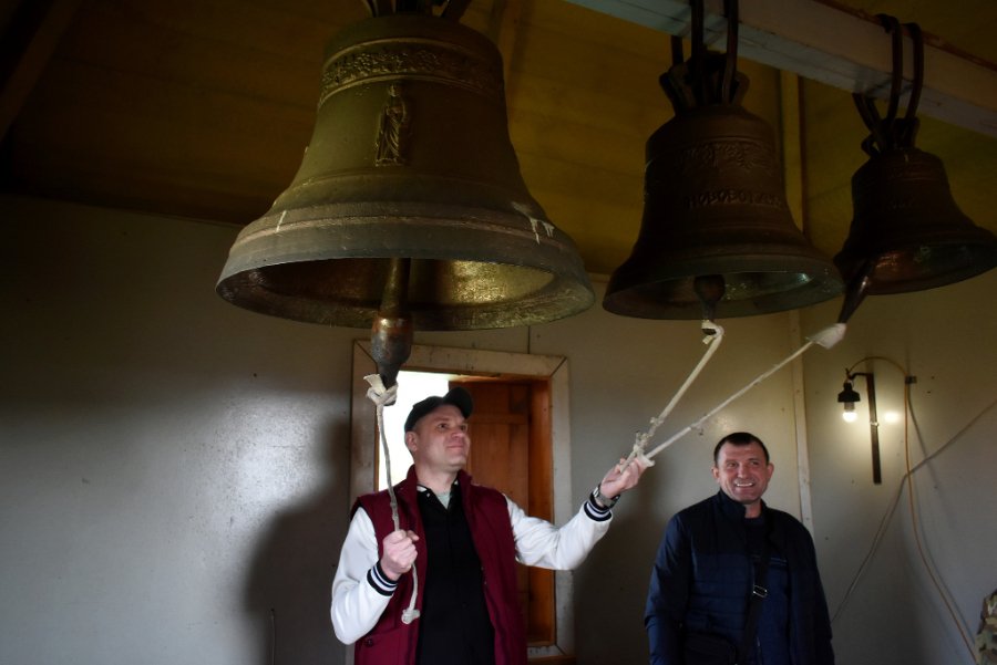 Довго просити хлопців не довелося. Вони відразу піднялися східцями, хоч це і не було просто. Кожен по черзі потягнув мотузки, аби відчути себе у ролі дзвонарів, а потім милувалися краєвидами з вікон вежі.