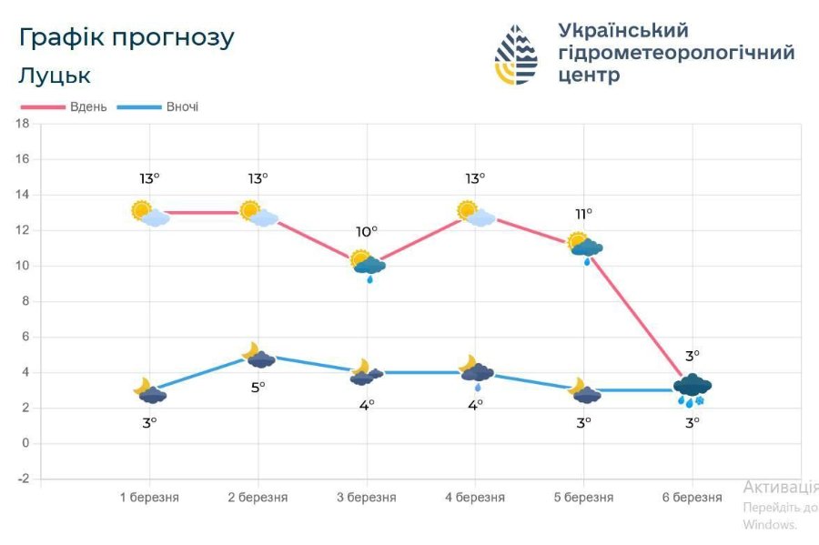 З 6 березня очікується суттєве зниження температури. Вночі від 2⁰ тепла до 3⁰ морозу,вдень 0-5⁰.