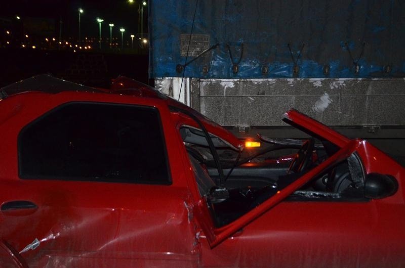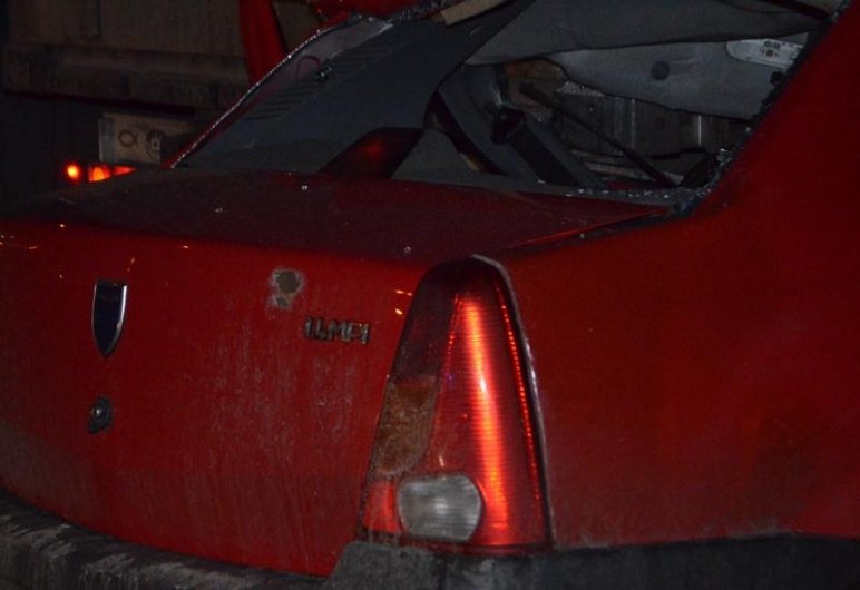 У Луцьку трапилася дорожньо-транспортна пригода: легковий автомобіль Dacia Logan зіткнувся з вантажівкою Renault Mack, буквально влетівши їй під причіп і зім’явши свою передню частину.