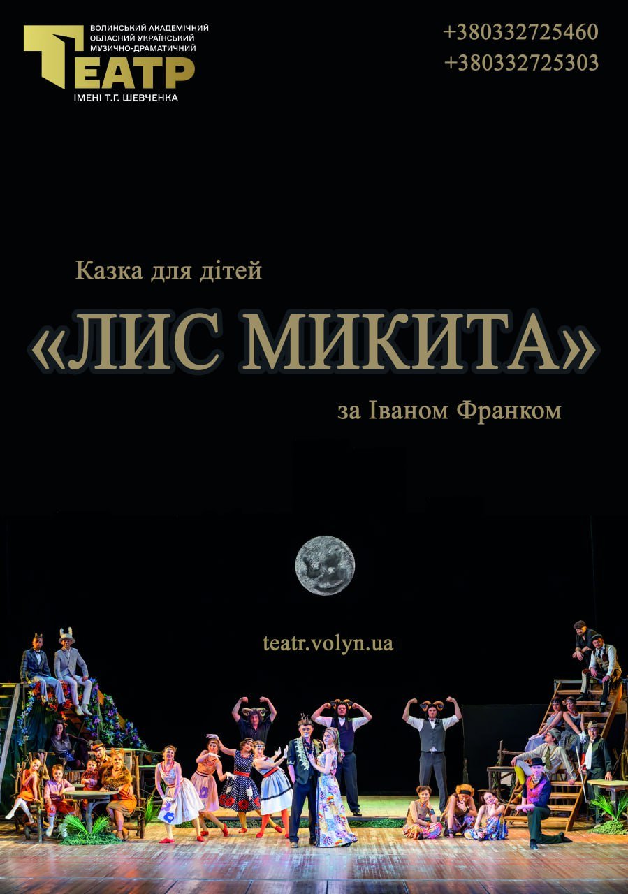 У неділю, 10 березня о 12:00, «Лис Микита» за Іваном Франком. Режисер-постановник – Ярослав Ілляшенко. Тривалість – 1 година 40 хвилин (антракт – 15-20 хвилин).