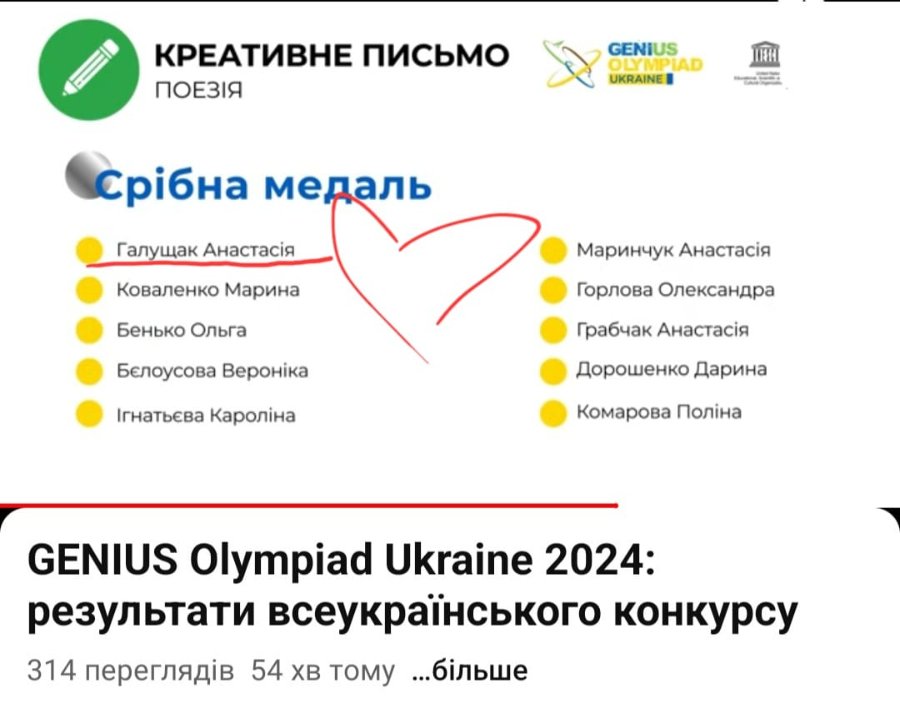 Учениця Горохівського ліцею №1 імені Івана Яковича Франка перемогла на Всеукраїнському конкурсі «Олімпіада геніїв України».