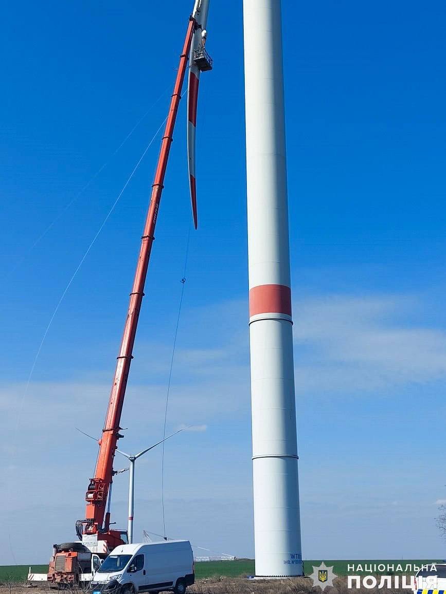 Під час дослідження вітряка, матеріалів, з яких він виготовлений, поліцейські за допомогою спеціальних засобів та підйомного крана піднялись на висоту 55 метрів та металодетектором встановили місцезнаходження бойової частини.