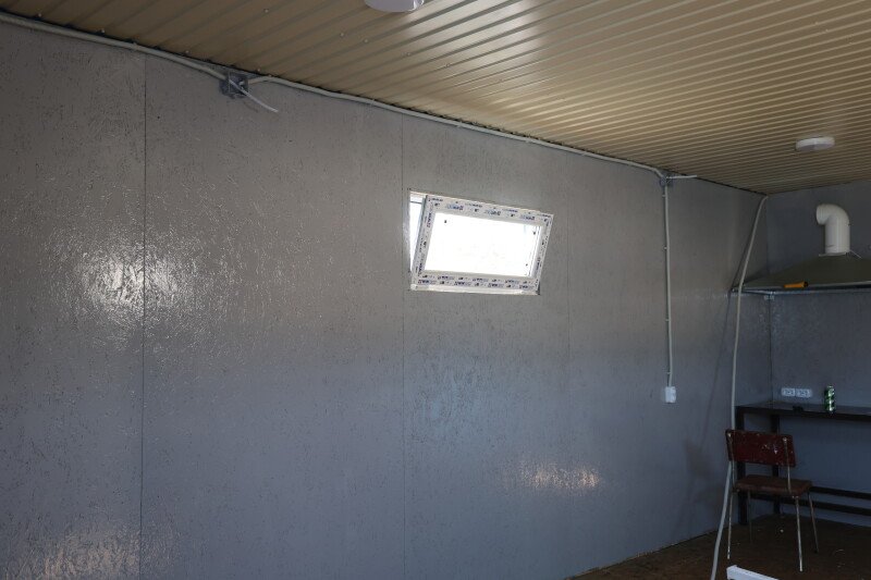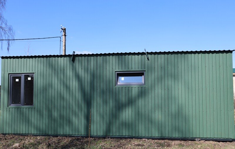 У модульному будиночку - одна велика кімната. Приміщення утеплене як ззовні, так і всередині, підведена електроенергія, встановлено меблі. Забезпечено усе необхідне для роботи та тимчасового перебування персоналу.