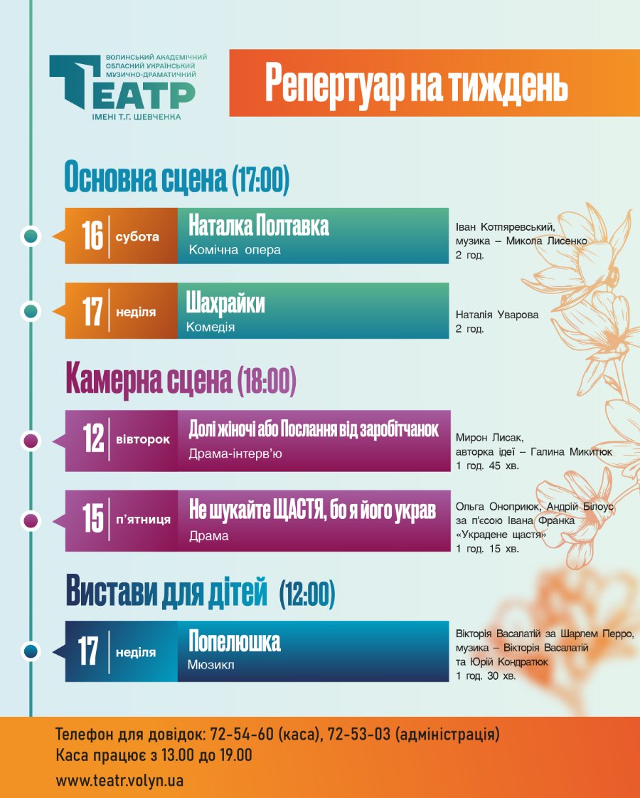 Театральний анонс: огляд вистав у Луцьку 12 – 17 березня