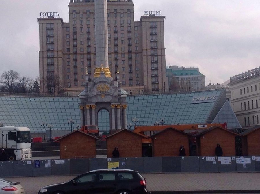 Парканом огородили місце на Майдані Незалежності, де будуть ставити новорічну ялинку і заливати ковзанку. Живі ялинки, з яких збиратимуть новорічне дерево, вже привезли.