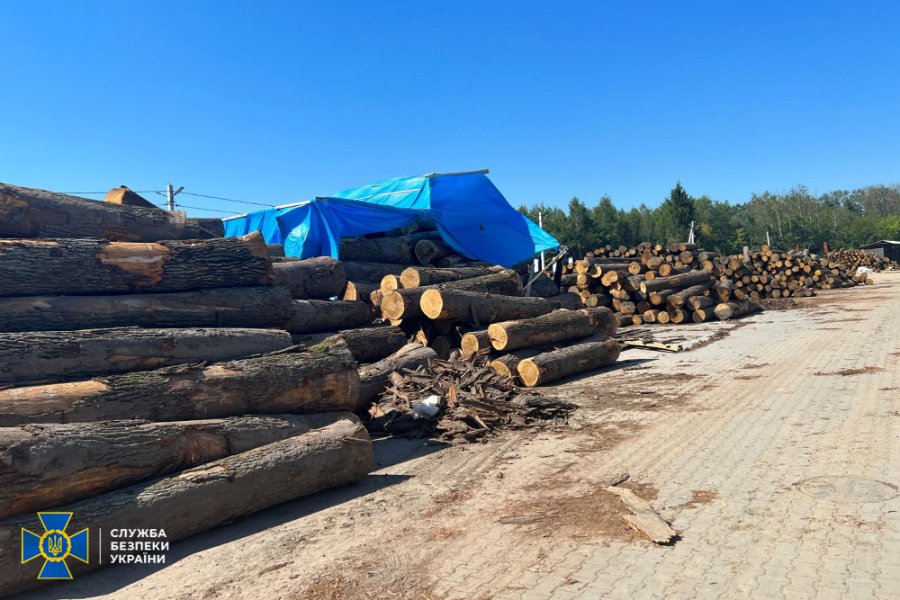 Також у ході санкціонованих обшуків на обʼєктах господарювання фігурантів виявлено та вилучено майже 500 м3 деревини породи "дуб" великих діаметрів, які готувалися до переробки, а також майже 300 м3 уже готової продукції.