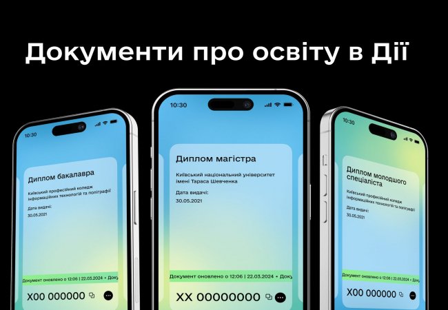 За його словами, відтепер у застосунку є свідоцтво про базову середню освіту; атестат/свідоцтво про повну загальну середню освіту та свідоцтво про присвоєння (підвищення) робітничої кваліфікації.