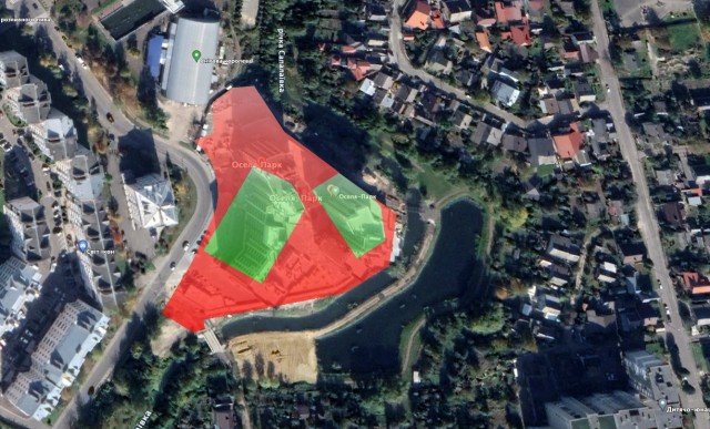На місці, де зараз височіє елітна нерухомість від забудовника Покровського, раніше були приватні будинки, які згодом зруйнувалися, а землю продали. Йдеться про дві земельні ділянки площею 0,2 та 0,1 га (виділені зеленим кольором). Але цієї площі занадто мало, щоб реалізувати амбітний проєкт, тому забудовник накинув оком на прилеглі площі, які належать місту. У результаті ТОВ «Казкова оселя» отримало в суборенду ще 0,7 га (виділена червоним кольором) фактично за безцінь, але з умовою укладення інвестиційної угоди і передачі 8% житлової площі членам сімей загиблих та ветеранам АТО.