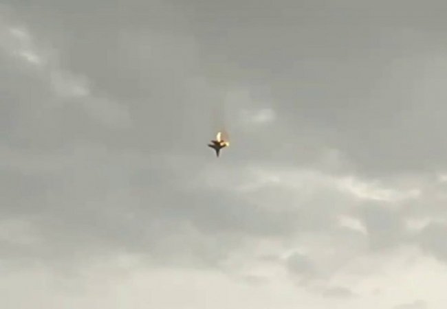 Місцеві канали публікують відео падіння літака і приземлення пілота. Він катапультувався.