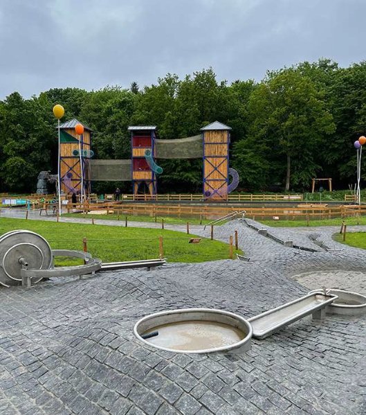 Серед ігрових елементів: слухова труба, яку часто можна зустріти на європейських майданчиках; палички, які імітують природний ліс; місточки та цікаві дворівневі лаунж-зони для дорослих.