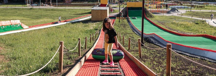Сезонність дитячого простору передбачає можливість використання різних зон: влітку сезон УРУРУ, а взимку – можна відвідати парк динозаврів, покататись на тубах, гірках та пострибати на сітках-батутах.