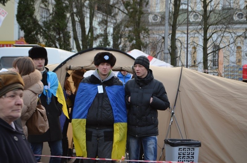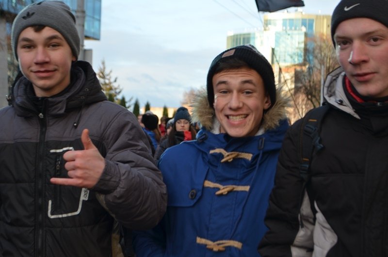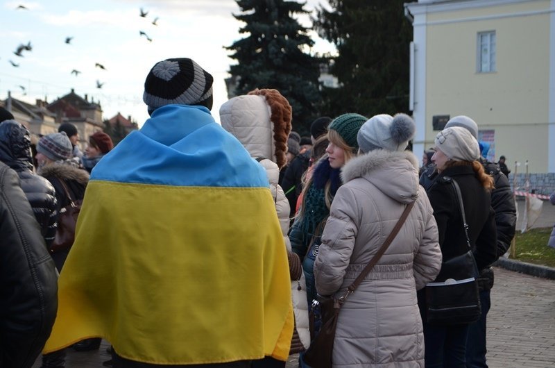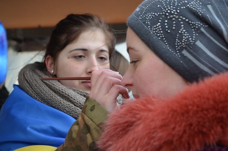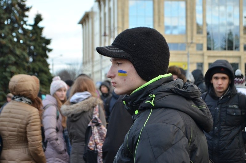 Збір розпочався о 9:00 на Театральній площі. Студенти приходили згуртовано, малювали на обличчях державних прапор, прикрашали одяг євросимволікою.