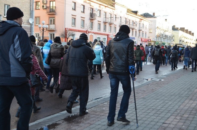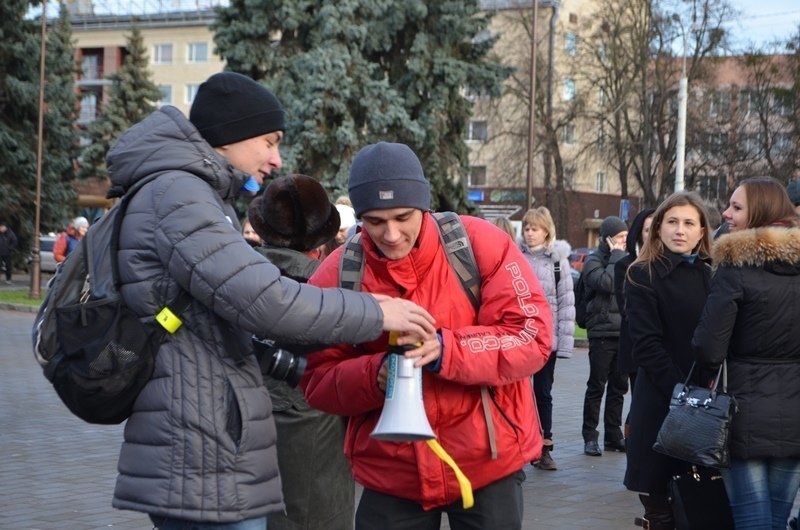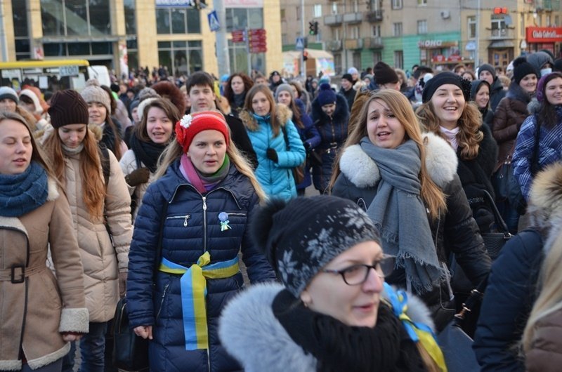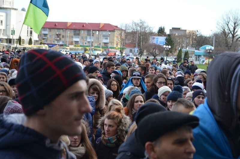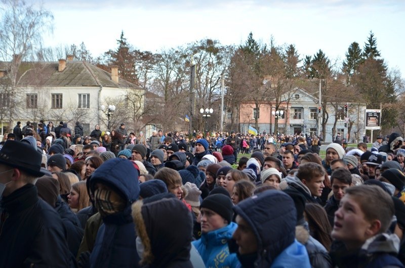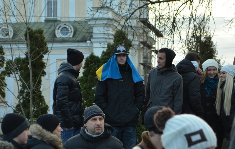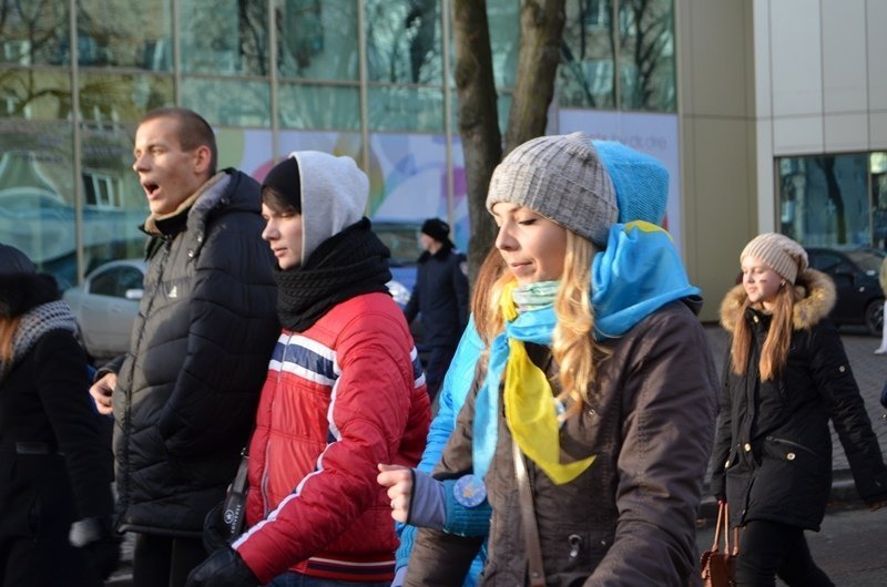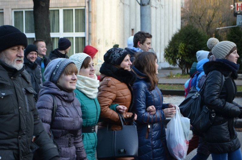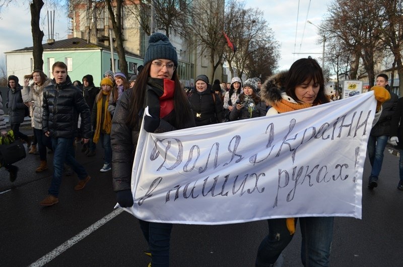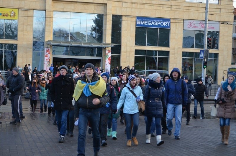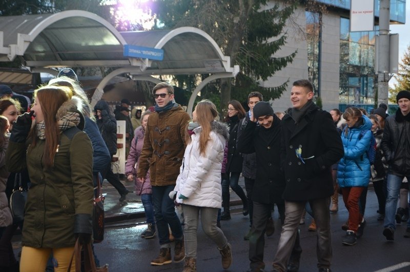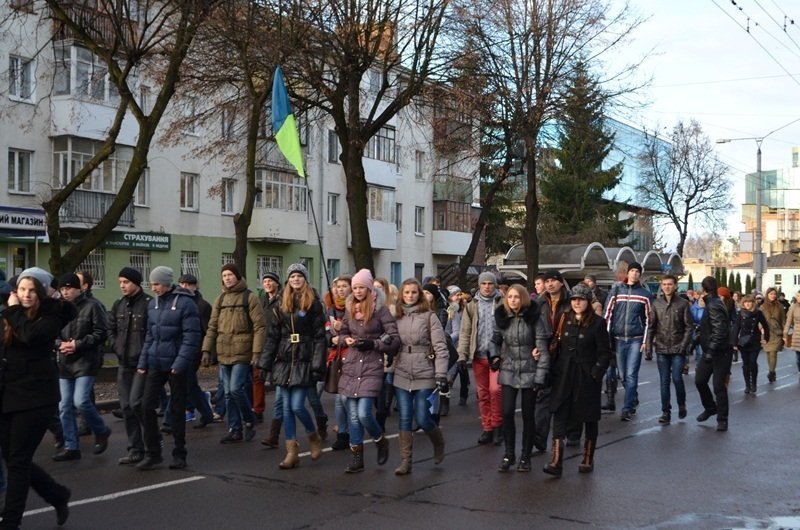 Перед ходою молоді на Театральній площі зачитали останній євромайданівські новини з Києва. Під час ходу студенти вигукували гасла «Слава Україні! Героям слава!», «Яника на нари, тоді підемо на пари!», «Банду – геть!», «Україна – понад усе!» та інші.