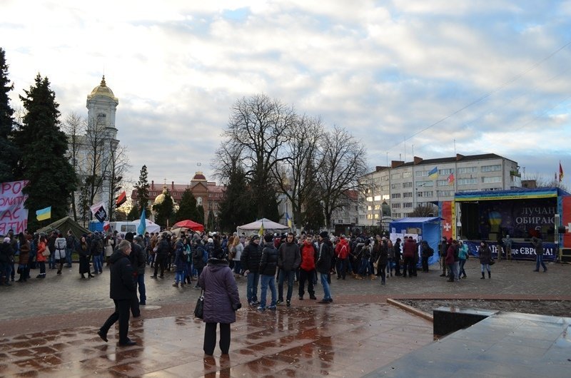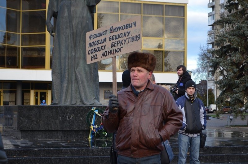 Деякі принесли плакати «Доля України – в наших руках!», «Ми за ЄС! Проти влади».