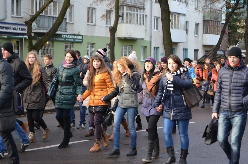 Кілька тисяч луцьких студентів 2 грудня в підтримку всеукраїнського страйку пройшлися від Театрального майдану до Київської площі.