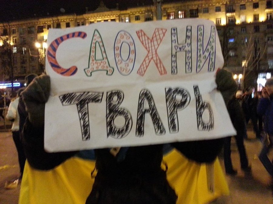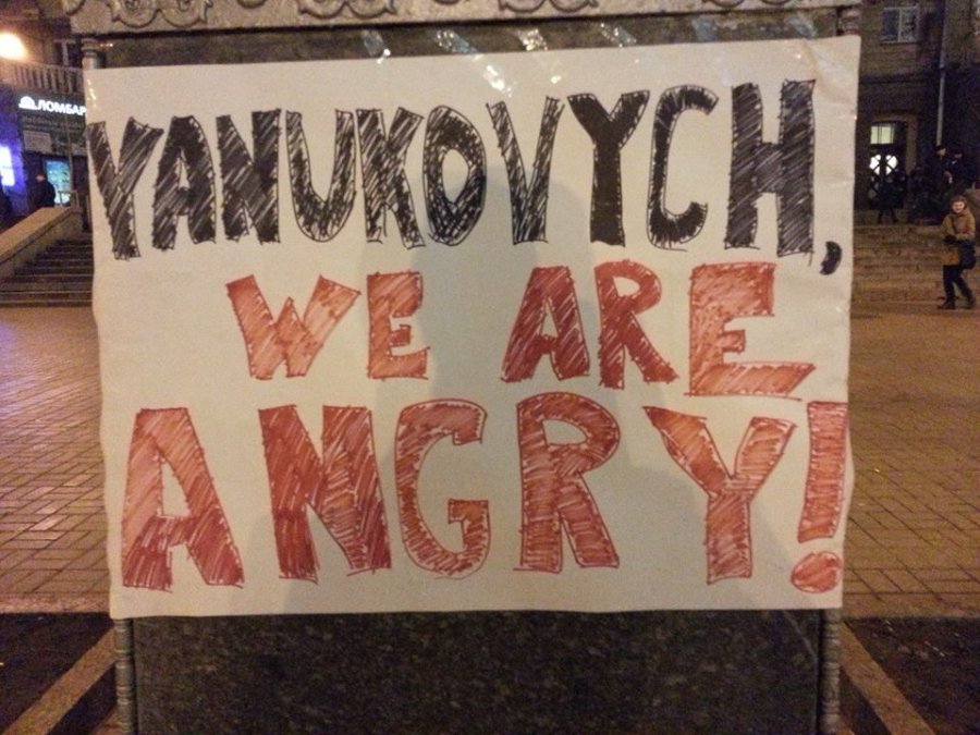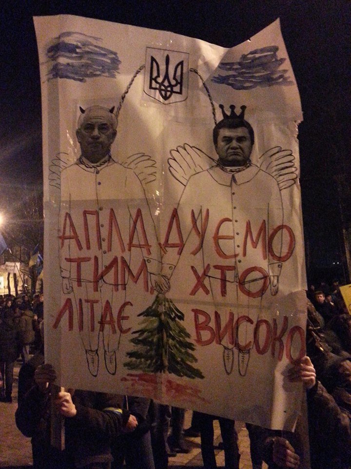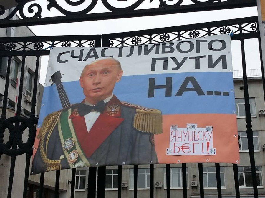 Всі цікаві плакати та гасла він сфотографував та опублікував у Facebook.