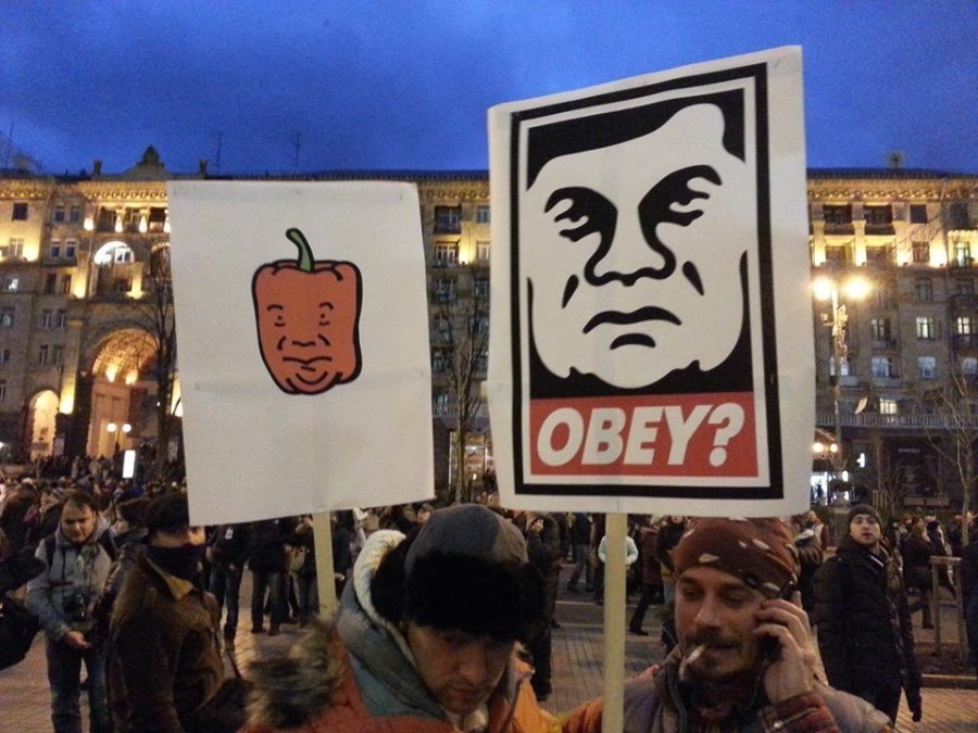 Користувачі соціальних мереж продовжують публікувати фотографії вуличного креативу прихильників євроінтеграції.