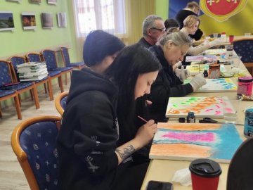 Під час арттерапії у Ковелі рідні загиблих військовослужбовців з Волині створювали картини, які згодом виставлять на аукціоні в США.