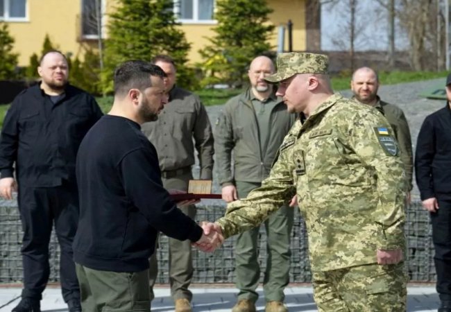 У другу річницю звільнення Київської області від російських окупантів Президент Володимир Зеленський взяв участь у піднятті Державного прапора України на флагштоку Меморіалу пам’яті захисників Бучанської громади і вручив нагороди воїнам ЗСУ, Національної гвардії, СБУ, поліцейським та рятувальникам.