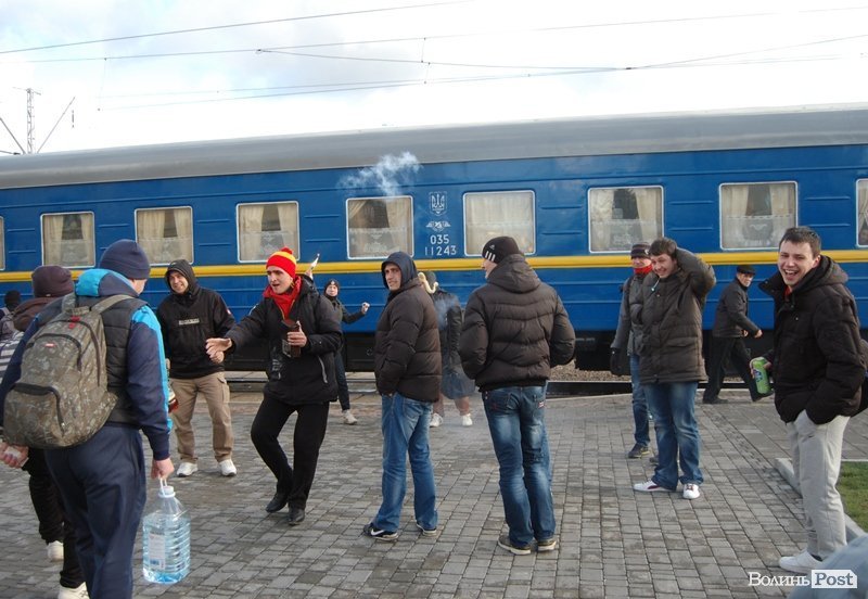 Вранці 2 грудня вони гучно попрощалися з Луцьком на залізничному вокзалі. Палили фаєри, танцювали. Додому їх проводжали фани «Волині», з якими у них дружні стосунки. До слова, до Луцька приїхало близько 60 ультрас із Запоріжжя.